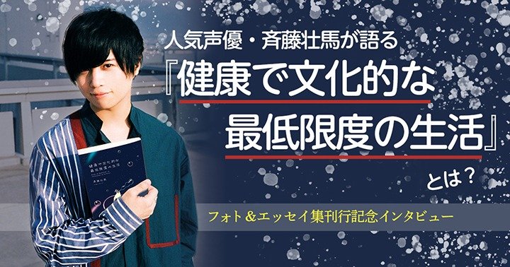 「ピアノの森」「ハイキュー!」「機動戦士ガンダム 鉄血のオルフェンズ」「キノの旅 -the Beautiful World- the Animated Series」など数々の話題作に出演している、人気声優の斉藤壮馬さん。このたび、声優グラビア誌「ボイスニュータイプ」の連載エッセイに撮り下ろし写真をたっぷり加えたフォト&エッセイ集『健康で文化的な最低限度の生活』が刊行されます。