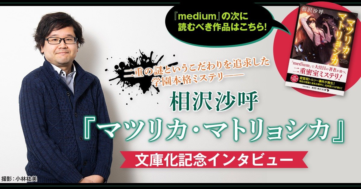 昨年9月に発表された相沢沙呼さんの『medium霊媒探偵城塚翡翠』(講談社)が、「このミステリーがすごい!」2020年版国内篇第1位、「本格ミステリ・ベスト10」2020年版国内ランキング第1位、「2019年ベストブック」(Apple Books)2019ベストミステリーに選出。名だたる国内ミステリランキングの三冠に輝き、大きな話題となりました。その名作が誕生するきっかけとなったのは、大人気「マツリカ」シリーズの3作目『マツリカ・マトリョシカ』だった!? その真相を聞くべく、文庫化されるタイミングでインタビューを行いました。