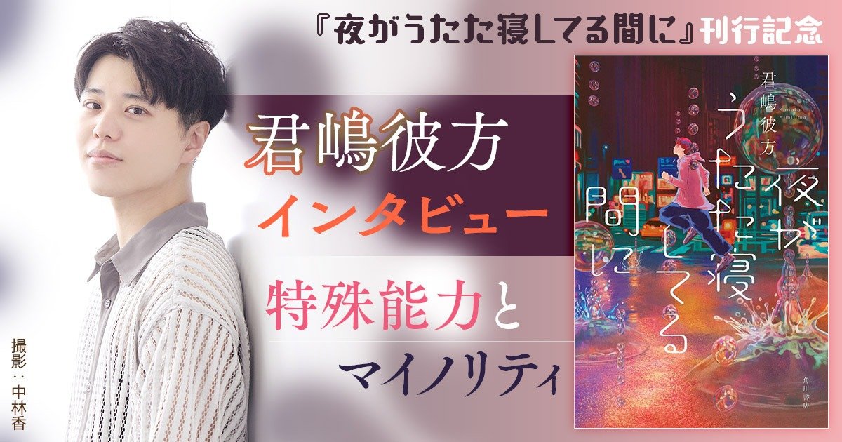 『君の顔では泣けない』で鮮烈なデビューを飾った著者・君嶋彼方さんの新作『夜がうたた寝してる間に』が8月26日に発売されました。二作目となる今作のキーワードは「特殊能力」と「マイノリティ」。創作過程や作品に込めた思いなど、詳しくお話を伺いました。