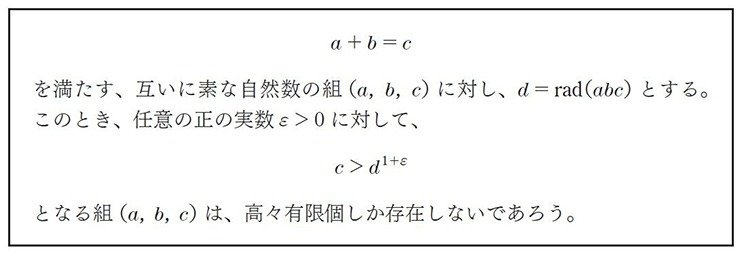 ――今回の論文でもっとも注目されたのは、数学の超難問である「ABC予想」の解決が行われた、という点だと思います。ABC予想とはどういったものですか。