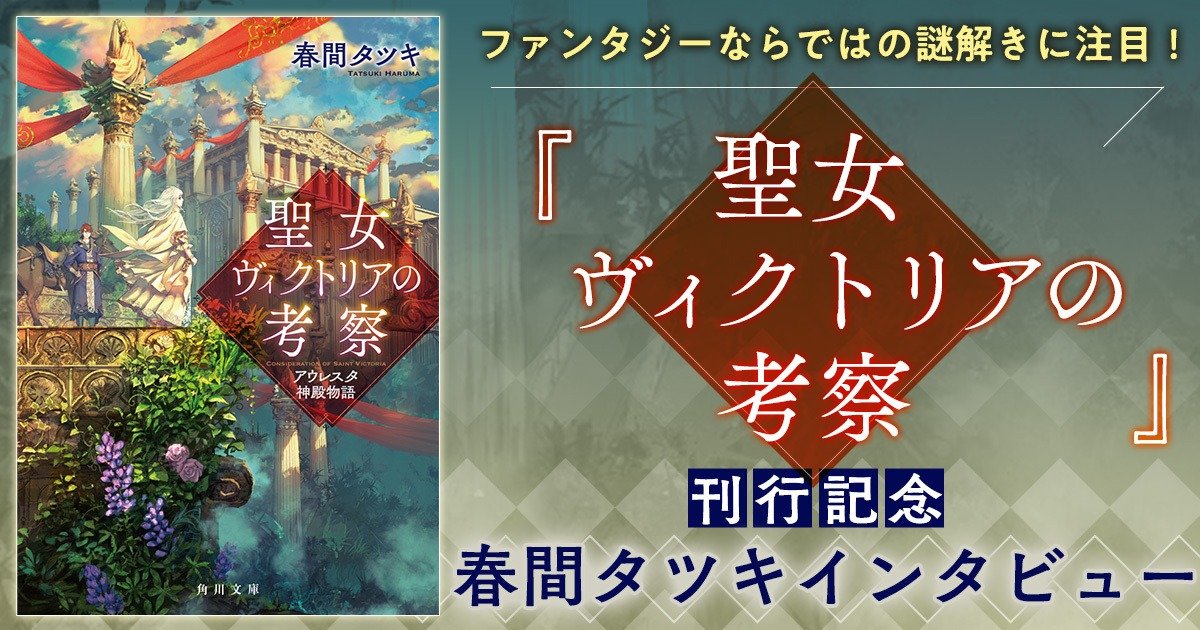 第6回角川文庫キャラクター小説大賞〈奨励賞〉受賞作『聖女ヴィクトリアの考察 アウレスタ神殿物語』がついに発売! ファンタジー世界ならではの謎解きが、選考委員に高く賞賛された今作。著者・春間タツキさんに、担当編集者が創作秘話などを伺いました。