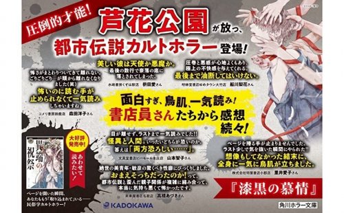 面白すぎ、鳥肌、一気読み!! 芦花公園『漆黒の慕情』に発売前から書店員さんたちから興奮と悲鳴の感想続々!