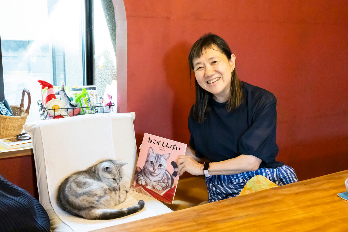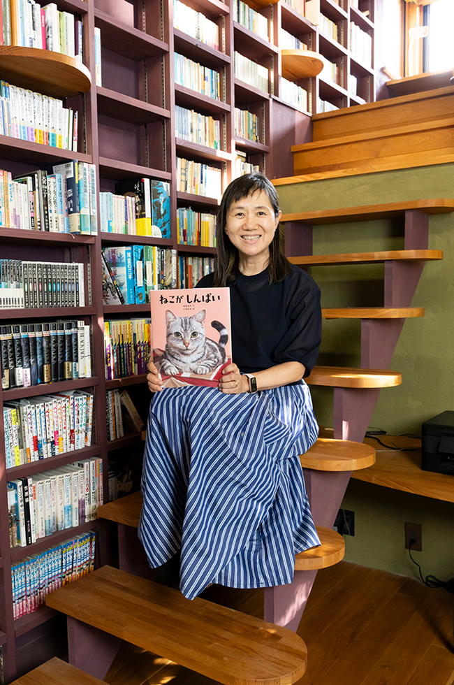 角田さんのご自宅で、絵本や猫についてお話をうかがいました。