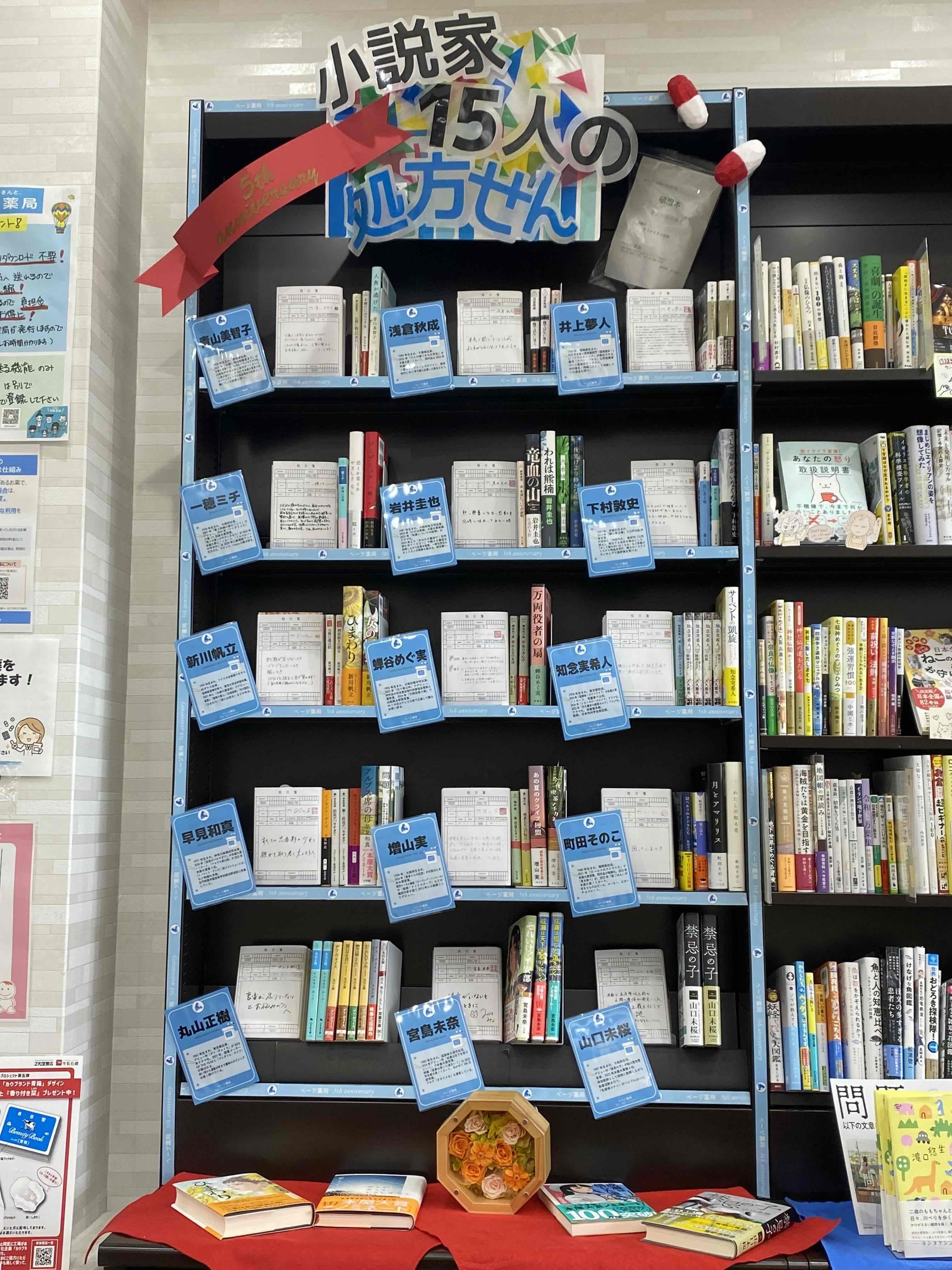 ――薬局×本屋という今までにない取り合わせだからこそのご苦労ですね。さて、ページ薬局さんでは周年のタイミングで様々な企画を行っていらっしゃいましたが、5周年企画「小説家15人の処方せん」が6月2日からスタートしました。(8月30日まで)こちらは、作家さんに選書をしていただき、タイトルを伏せた状態で処方せんを書いたブックカバーだけを見てお客様に本を選んでいただく、という企画です。どのような想いから企画されたのでしょうか。