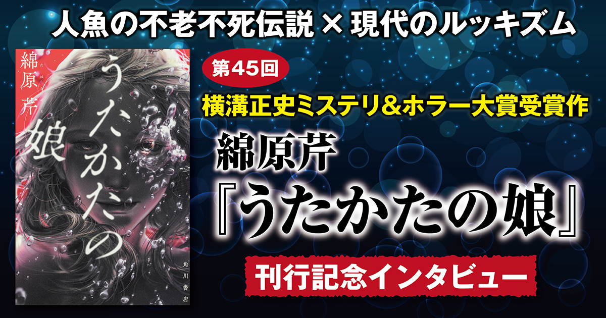 第45回横溝正史ミステリ&ホラー大賞〈大賞〉〈カクヨム賞〉W受賞作『うたかたの娘』が、10月1日(水)に発売となりました。大反響につき発売即重版となった本作は、圧倒的な美しさを持つ怪異の謎と、それに翻弄される人間の事件を描いた怪異譚です。選考委員の綾辻行人さんと米澤穂信さんの激賞を受けた本作について、著者の綿原芹さんにお話を聞きました。