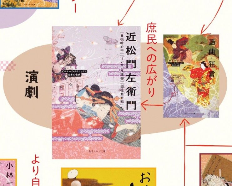 角川ソフィア文庫の「ビギナーズ・クラシックス」シリーズ20周年を記念して公開された「ビギナーズ古典MAP」(https://kadobun.jp/special/beginners/)。