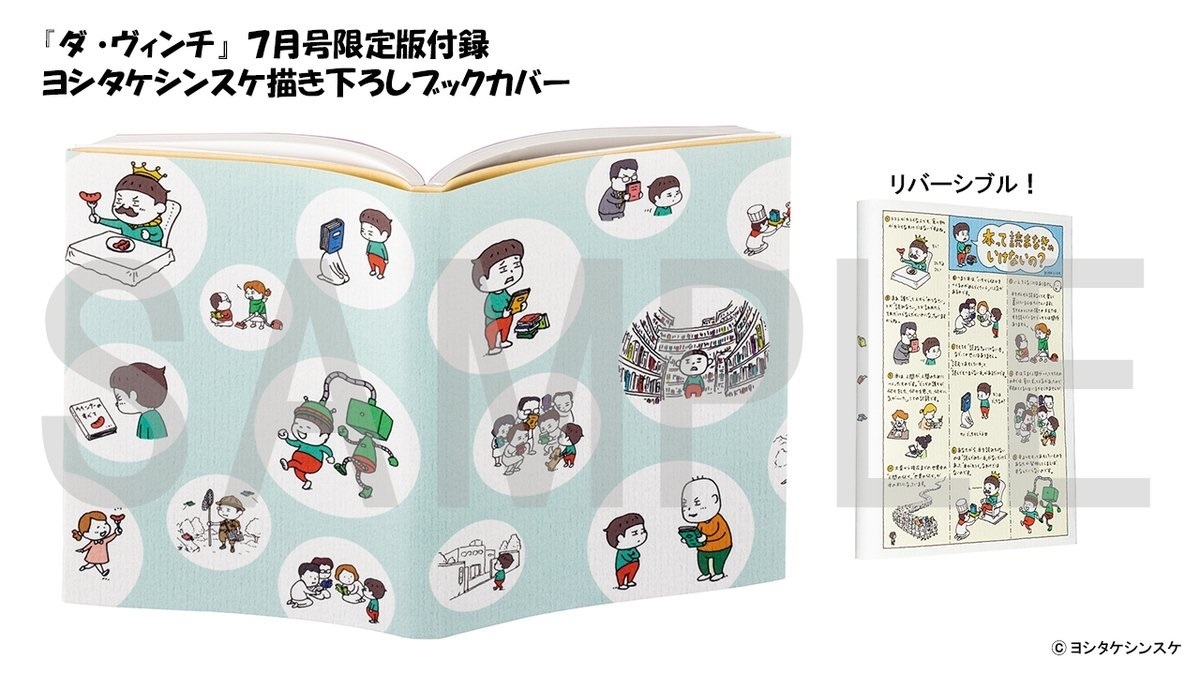 そして現在発売中の『ダ・ヴィンチ7月号』では、通常版に加え、ヨシタケシンスケさんによる描き下ろしブックカバー(文庫本用)付録付きのTSUTAYA限定版も、数量限定で発売中。