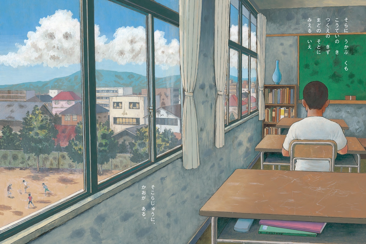 空、校庭、教室、そして家。いろんなところに「顔」はある。ある日、そのうちのひとつに睨まれてから身の回りは顔で侵食されていく。どこに行っても顔、顔、顔。そして最後には……。岩崎書店主催「怪談えほんコンテスト」で大賞を受賞した作品、待望の書籍化。