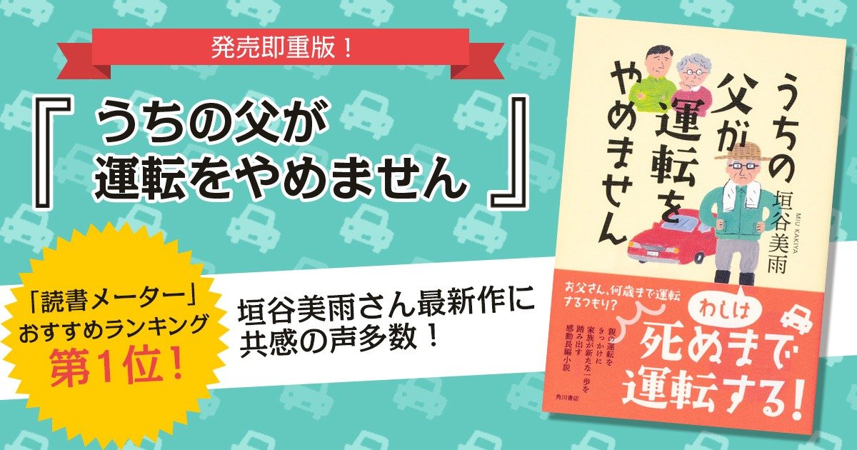▼垣谷美雨『うちの父が運転をやめません』詳細はこちら(KADOKAWAオフィシャルページ)