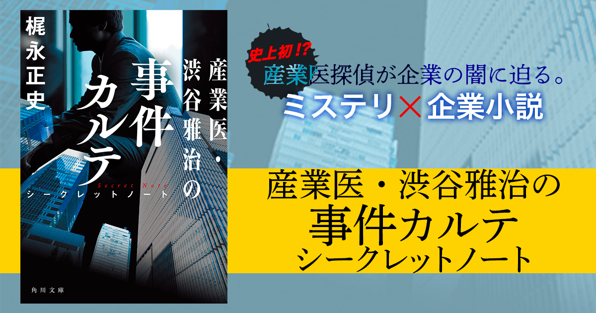 4月25日、角川文庫で『産業医・渋谷雅治の事件カルテ シークレットノート』が刊行されました。著者の梶永正史さんは2014年に第12回「このミステリーがすごい!」大賞を受賞した『警視庁捜査二課・郷間彩香 特命指揮官』でデビュー。それ以降、警察小説を数多く執筆されてきました。本作はこれまでの主戦場とは違い企業が舞台のミステリ小説。主人公の職業も〈産業医〉です。職業としてはよく耳にしますが産業医とはどんな仕事なのでしょうか? 産業医についての解説を交えつつ、本作執筆のきっかけ、創作秘話について梶永さんにお話を伺いました。