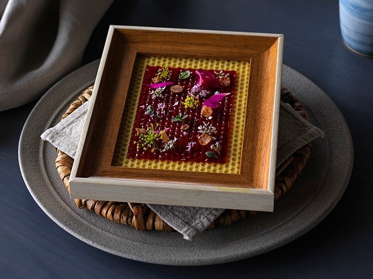 デザートには、アイスクリームとともに、蜂蜜で漬けた松ぼっくりが出てきた。子供の頃拾い集めたあのかわいいものが「食べられる」ということもうれしかったし、「これを探してスタッフみんなで取りにいったんです」という話もあたたかかった。