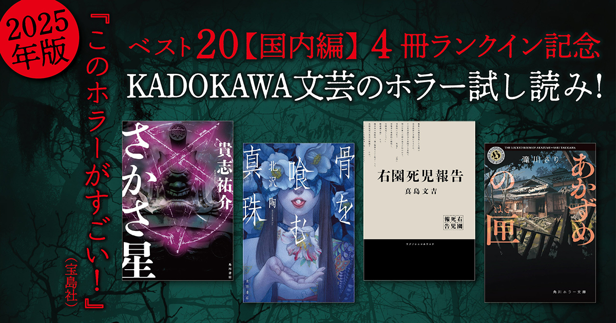 そのベスト20【国内編】に、KADOKAWAの単行本&角川ホラー文庫から4作品がランクイン! 本記事ではその4作品をご紹介します。