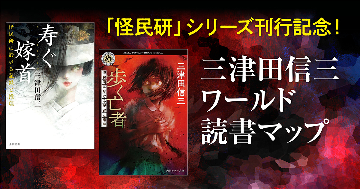 こうなると、どういう傾向の作品があるのか、どこから手をつければいいのか、著者の全体像を掴みかねている読者もいると思われる。本稿では、『歩く亡者』『寿ぐ嫁首』の「怪民研」シリーズ2作を中心に、三津田ワールドのわかりやすい読書マップを作成してみたい。