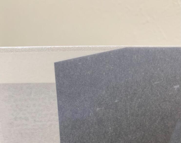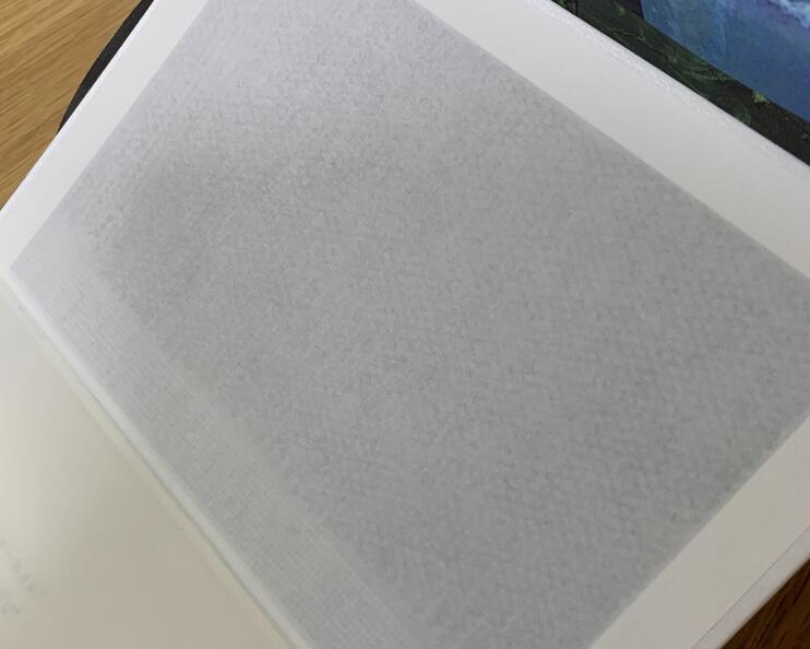 白の箔押しと空押しの2種の加工が施されていることにお気づきでしょうか? 目の見えない緋紗子を意識した、触って感じられる凹凸と光の反射という当初のプラン通りのデザインが実現されました! 角度によって反射加減が違うので、是非、色々なアングルで眺めてみてくださいね。