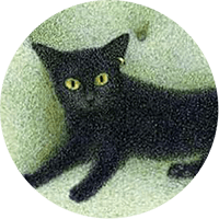 特徴:漆黒の毛並みを持つ黒猫。耳に小さなピアスをつけている