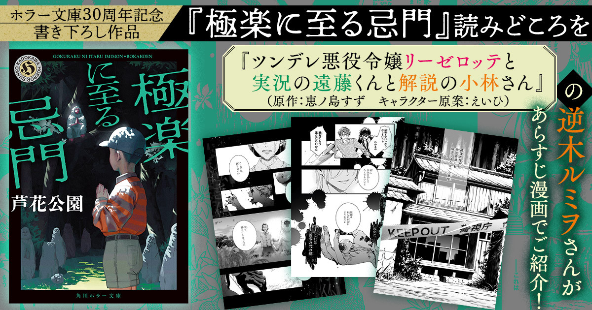 芦花公園さん『極楽に至る忌門』の読みどころを、『ツンデレ悪役令嬢リーゼロッテと実況の遠藤くんと解説の小林さん』(原作:恵ノ島すず キャラクター原案:えいひ)の逆木ルミヲさんがあらすじ漫画でご紹介。