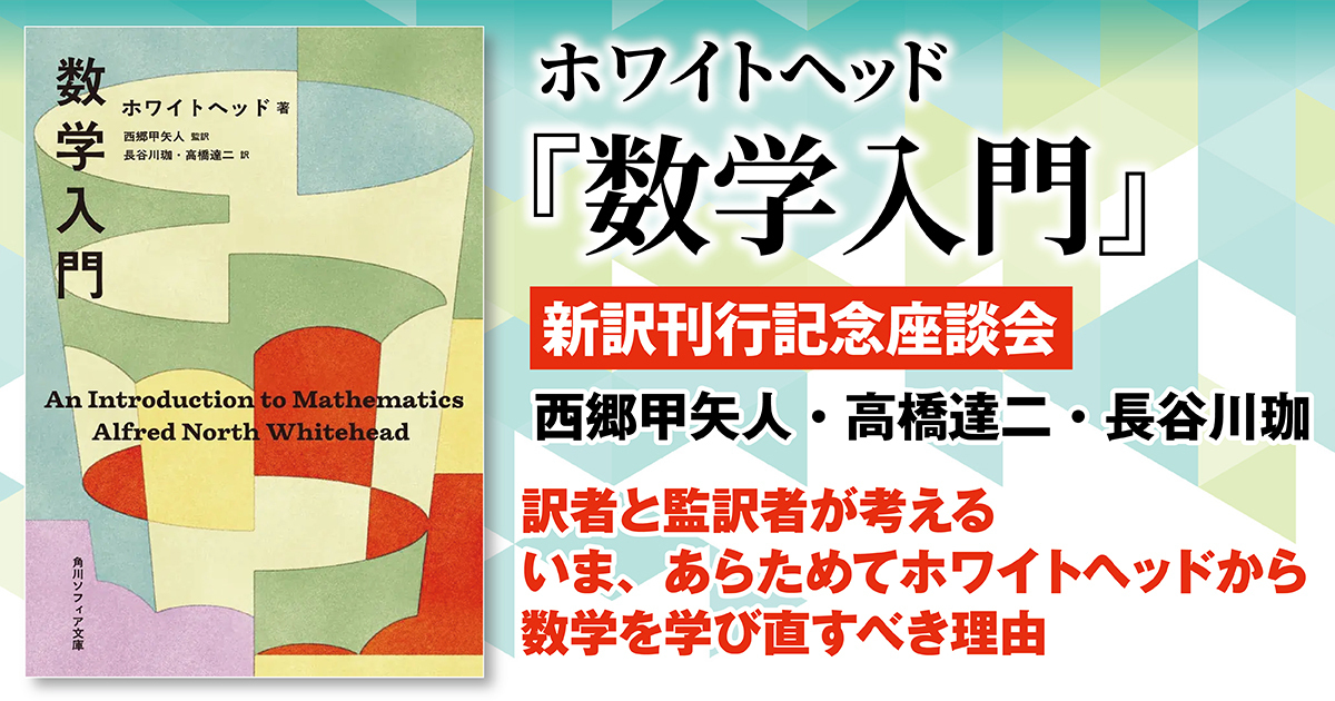 20世紀前半に活躍した偉大な数学者・哲学者であるホワイトヘッド。彼がラッセルとともに著した数学史に残る大著『プリンキピア・マテマティカ(数学原理)』を執筆していたとき、じつは同時に、一般の読者にむけて、『数学入門』という入門書を書いたのでした。このたび、角川ソフィア文庫からホワイトヘッド『数学入門』を新訳にて刊行いたしました(2025年12月25日発売)。なぜいま、『数学入門』を新訳するのか、110年以上前の入門書をいま改めて読む意義とは。訳者の3人にたっぷり語っていただきました。