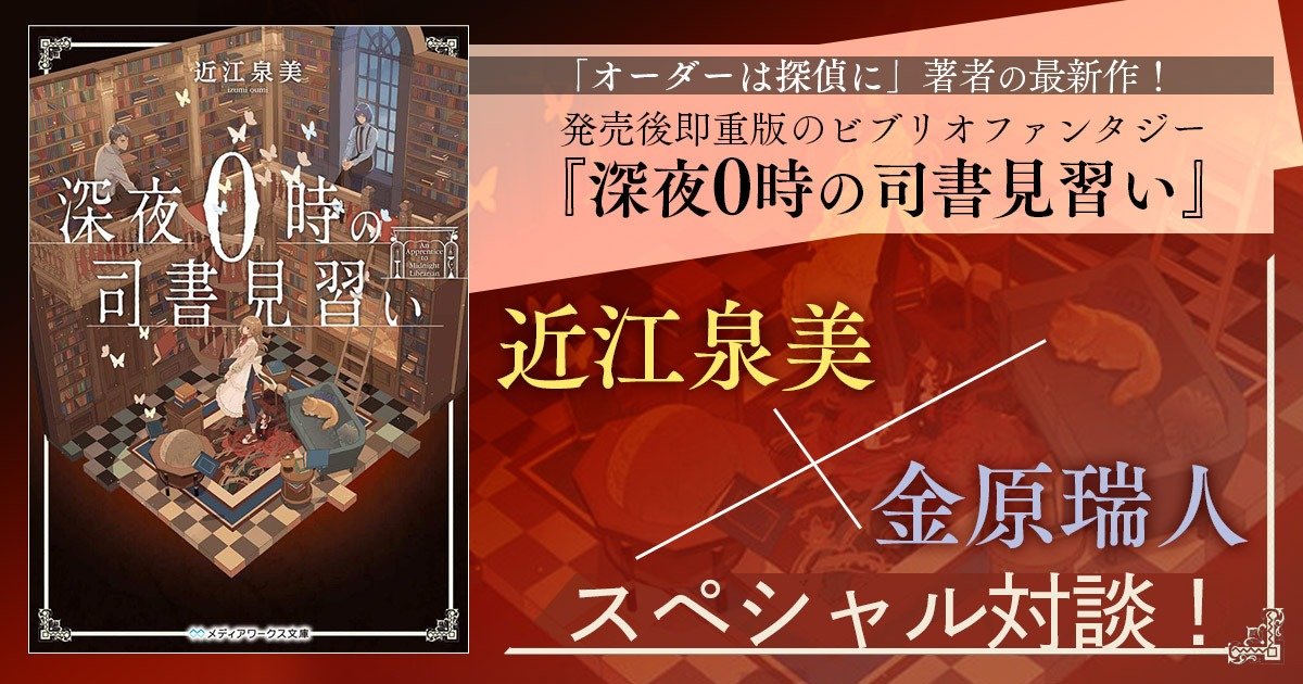 シリーズ累計50万部を突破したメディアワークス文庫の大人気シリーズ「オーダーは探偵に」が昨年ついに完結。近江泉美さん待望の新作『深夜0時の司書見習い』(メディアワークス文庫/KADOKAWA)は、不思議な図書屋敷を舞台にしたビブリオファンタジーです。発売を記念し、翻訳家の金原瑞人さんとの対談が実現! 感想や創作秘話を語り合うのはもちろん、金原さんによるファンタジーの歴史についての解説など、ボリューム満点の内容となりました。