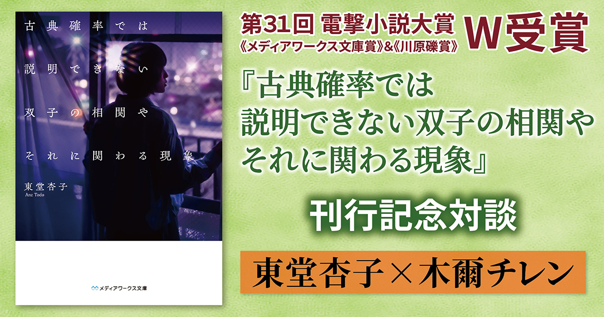 第31回電撃小説大賞 《メディアワークス文庫賞》&《川原礫賞》をW受賞した東堂杏子さんと、最新刊『二人一組になってください』がベストセラーになっている人気作家・木爾チレンさんの緊急対談が実現! 受賞作の感想をはじめ、小説の作り方や今後書きたい物語など、熱く語り合っていただきました。