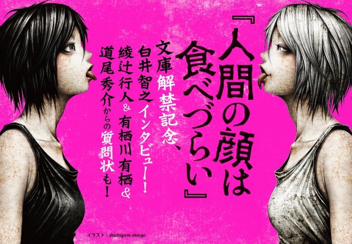 2014年の第34回横溝正史ミステリ大賞最終選考会で物議を醸し、大賞受賞には至らなかったものの、選考委員の有栖川有栖氏、道尾秀介氏の強い推薦を受けて単行本で刊行された『人間の顔は食べづらい』。刊行後にはミステリファンの間で賛否両論を巻き起こした作品が、ついに文庫化されました。綾辻行人氏からは“鬼畜系特殊設定パズラー”の異名も授けられた、弱冠26歳の鬼才・白井智之氏。謎に包まれた著者に(ほぼ)初のインタビューを敢行。また、綾辻氏、有栖川氏、道尾氏からいただいた質問にもお答えいただきました。