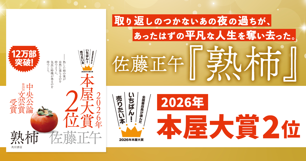 本日2026年4月9日(木)、明治記念館にて「全国の書店員が選んだ いちばん!売りたい本 2026年本屋大賞」の発表会が開催され、佐藤正午『熟柿(じゅくし)』が第2位に決定しました。