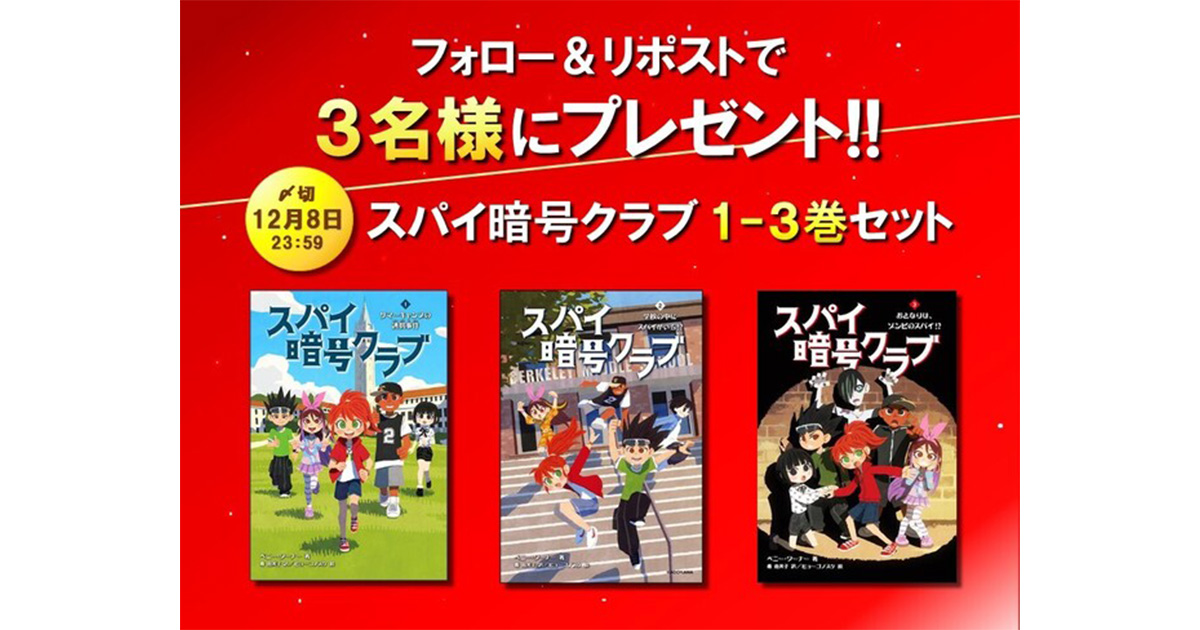 これを記念して、抽選で3名様に「スパイ暗号クラブ」1-3巻セットが当たるプレゼントキャンペーンを実施します。