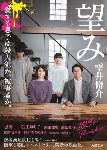 累計20万部突破の原作『望み』(角川文庫)は、映画ビジュアルを使用した新カバーにて今月上旬より順次出荷!