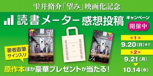 先日解禁された本予告が“泣ける!”と話題の、10月9日(金)公開映画「望み」(KADOKAWA)。公開を記念して、豪華プレゼントが抽選で30名様に当たる読書メーター感想投稿キャンペーンを開催中です!