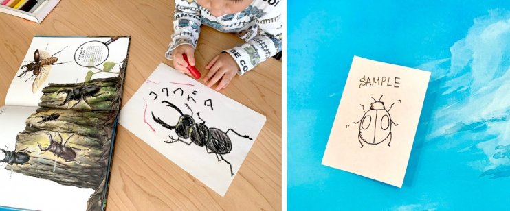 STEP3 ご自身(もしくはご家族)の描いた虫の絵と『すごい虫ずかん』の絵本が一緒に写った写真を撮る