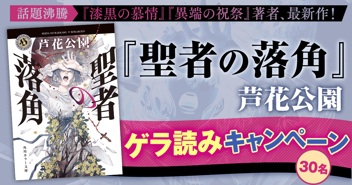 芦花公園著『聖者の落角』ゲラ読みキャンペーンは、編集部の想定の上限を上回るご応募をいただいたため、本日で募集を終了させていただきました。ご応募くださった皆様、ありがとうございました。