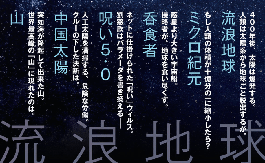 「三体」著者 劉慈欣が送る、スペクタクルな世界をご堪能ください。