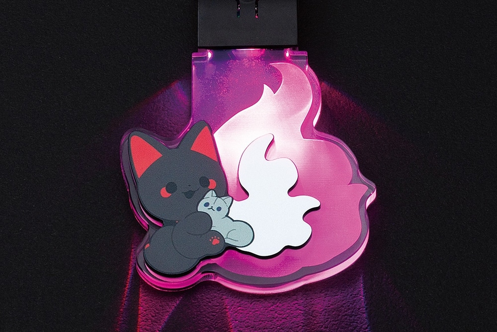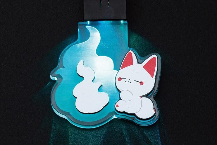 猫又のスミハチがファン待望のぬいぐるみ化! さらに、狐火が光るLEDアクリルキーホルダー(ベニ・キン・シロ・クロの4種)も登場。コンプリートしたくなる可愛さです!
