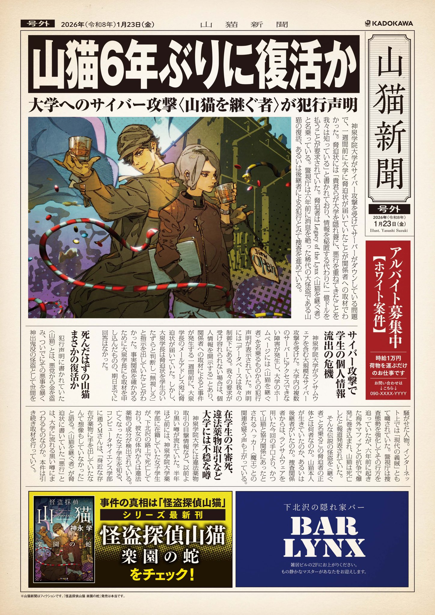 神永学『怪盗探偵山猫 楽園の蛇』(角川文庫)が、2026年1月23日(金)に発売となりました。