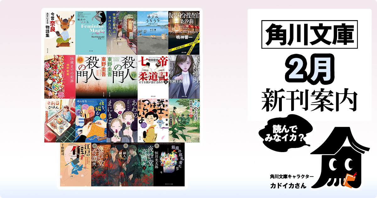 2026年2月25日に発売予定の角川文庫(日本文学・時代小説)、角川ホラー文庫の新刊ラインナップをご紹介します。(※地域により発売日が前後する場合があります。ご了承ください)。