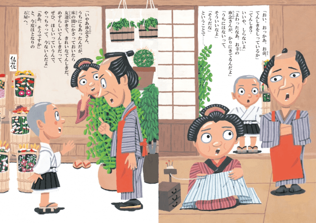 何のことかわからない和尚は、小坊主の珍念さんに「てんしきをかりてこい」とたのみます。珍念さんは花屋や石屋のおじさんに、かりにいきますが、だれも「てんしき」を知りません。それどころか、大人たちは、みんな知っているふりをしてしまい……。