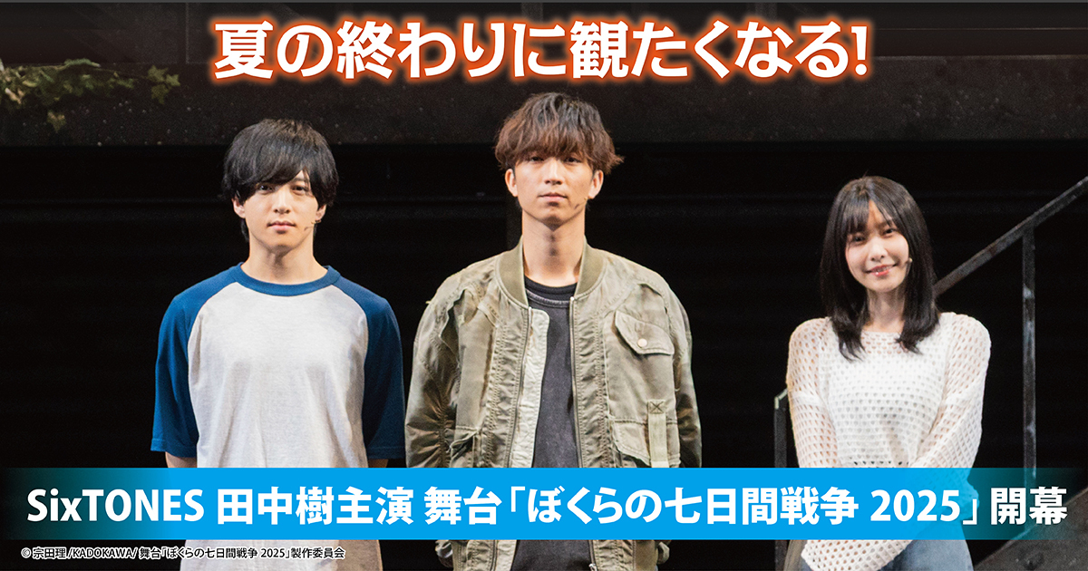 SixTONESの田中樹が初の単独主演を務める舞台「ぼくらの七日間戦争2025」が、8月24日より上演中(11月9日まで全国5カ所、全45公演予定)。原作は、1985年に発行された宗田理の同名小説(角川文庫/角川つばさ文庫 刊)。中学生たちが理不尽な態度をとる大人たちに反発して、夏休み初日から廃工場に立てこもるストーリーは、原作発売から40年経ったいまでも褪せることなく胸が熱くなる“ワクワク”が詰まっている。ここでは開幕前日に行われた囲み取材とゲネプロの模様をレポートする。