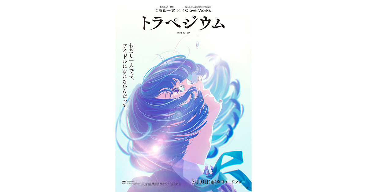 原作者である高山一実がシナリオ制作など映画制作に深く関わり、彼女でなければ描けないテーマ「アイドルが放つ輝き」とは何なのか?「アイドル」とは何なのか?という“想い”をさらに追い求めた本作。『ぼっち・ざ・ろっく!』、『SPY×FAMILY』のCloverWorksのスタッフとともに完全版『トラペジウム』としてアニメーション映画化。2024年5月10日(金)、全国の映画館でアイドルを目指す少女の10年間を描いた青春物語が幕を開けます。