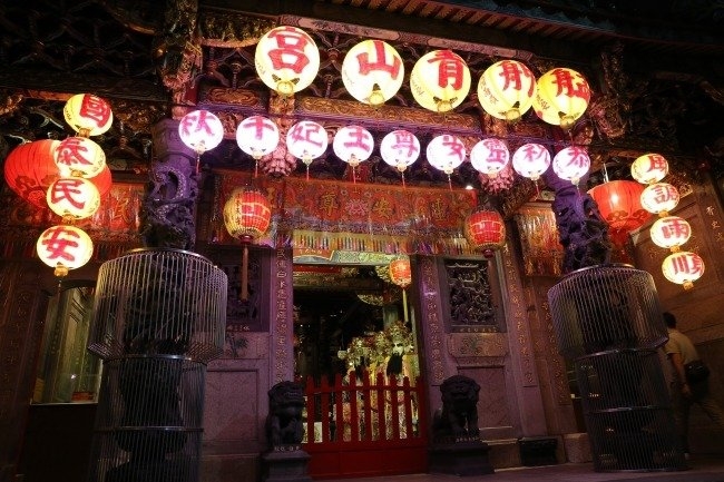 ▲艋舺青山宮。ここに限らず台湾の廟は夜になるととても賑やかな雰囲気となる。