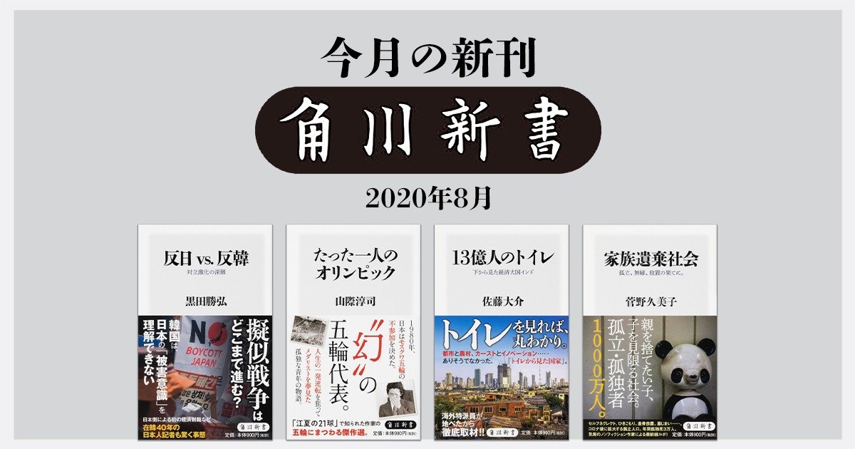 角川新書8月の新刊はジャーナリストたちの競演! 疑似戦争はどこまで進む?『反日 vs. 反韓 対立激化の深層』、現役世代の男性にも多い孤立の実態『家族遺棄社会 孤立、無縁、放置の果てに。』など計4作品