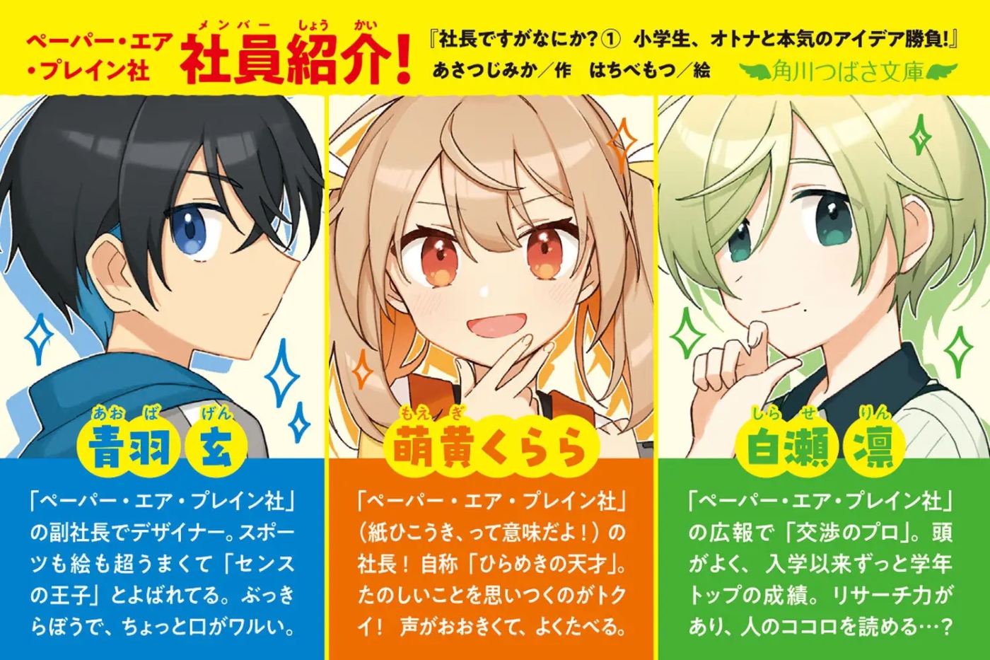 KADOKAWAは、児童文庫レーベル「角川つばさ文庫」より「第11回角川つばさ文庫小説賞」一般部門【金賞】受賞作である『社長ですがなにか?(1)小学生、オトナと本気のアイデア勝負!』(あさつじみか・作 はちべもつ・絵)を9月13日(水)に刊行しました。