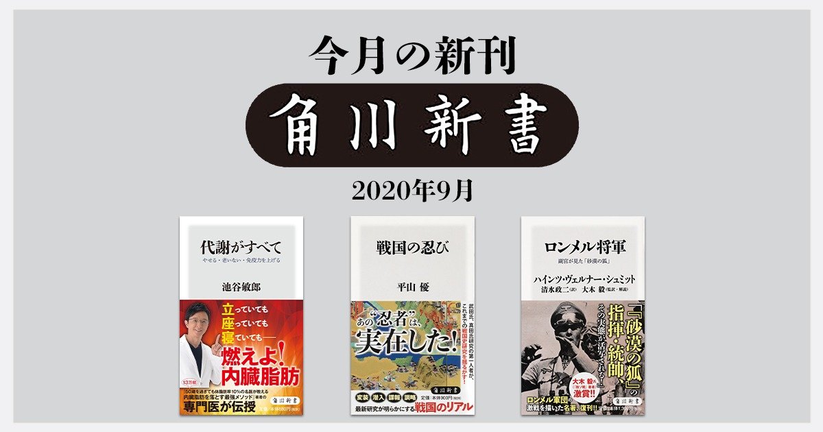 角川新書9月の新刊は歴史と健康。読書の秋、健康に留意しつつ骨太の歴史書を味わってください! 最新研究が明らかにする戦国のリアル『戦国の忍び』、代謝の知識を専門医が伝授する『代謝がすべて』など計3作品