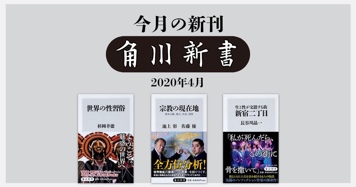 角川新書4月の新刊! 最強コンビが宗教を全方位から分析する『宗教の現在地 資本主義、暴力、生命、国家』、気鋭のノンフィクション作家による渾身作!『生と性が交錯する街 新宿二丁目』など計3作品