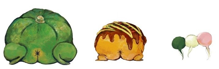 ページをめくると、おいしそうなトマトやどら焼きがならんでいるけど……あれれ、近くでよく見てみるとっ?!