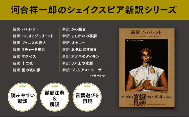 なお、訳者の河合祥一郎氏は日本シェイクスピア協会元会長で、河合訳は原文の韻を日本語で忠実に反映していると定評があります。