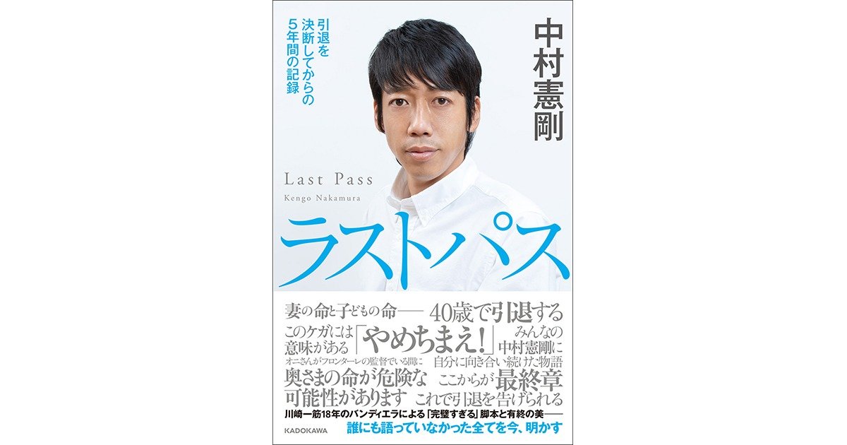 KADOKAWAは、2020年シーズン限りで現役を引退した中村憲剛さんの書き下ろし新刊『ラストパス 引退を決断してからの5年間の記録』を2021年6月30日(水)に発売します。