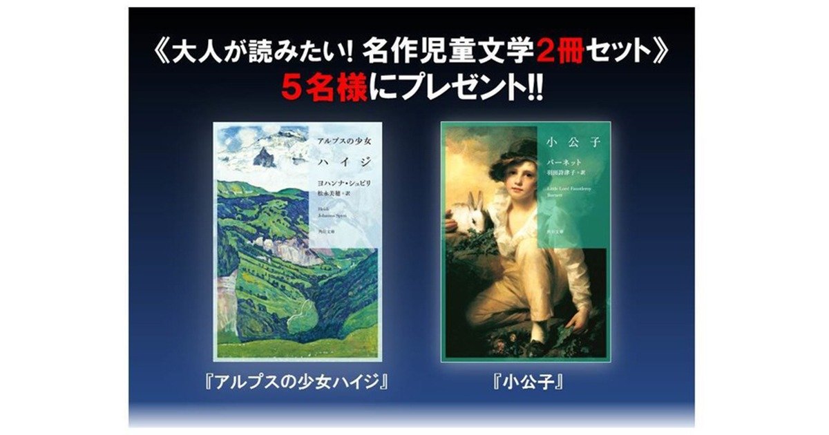 1つは、雄大なアルプスを背景に、純真な少女ハイジが人々に幸せと奇跡をもたらす『アルプスの少女ハイジ』。もう1つは、ニューヨークの下町生まれの少年が、英国貴族の跡取りとなり、幸せをつかんでいく『小公子』。この2作品の刊行を記念して、《大人が読みたい!名作児童文学2冊セット》を、抽選で5名様にプレゼントします!