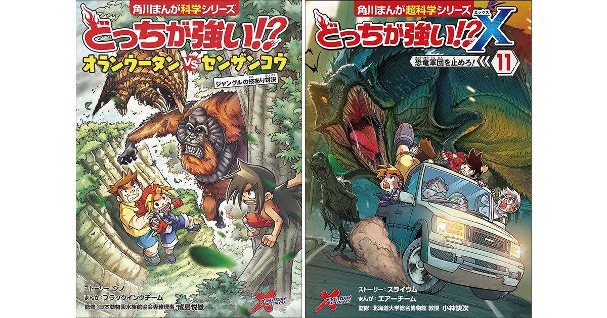 KADOKAWAは、 2022年2月10日(木)に角川まんが科学シリーズより『どっちが強い!? オランウータンvsセンザンコウ ジャングルの技あり対決』、角川まんが超科学シリーズより『どっちが強い!?X(11) 恐竜軍団を止めろ!』を刊行いたしました。