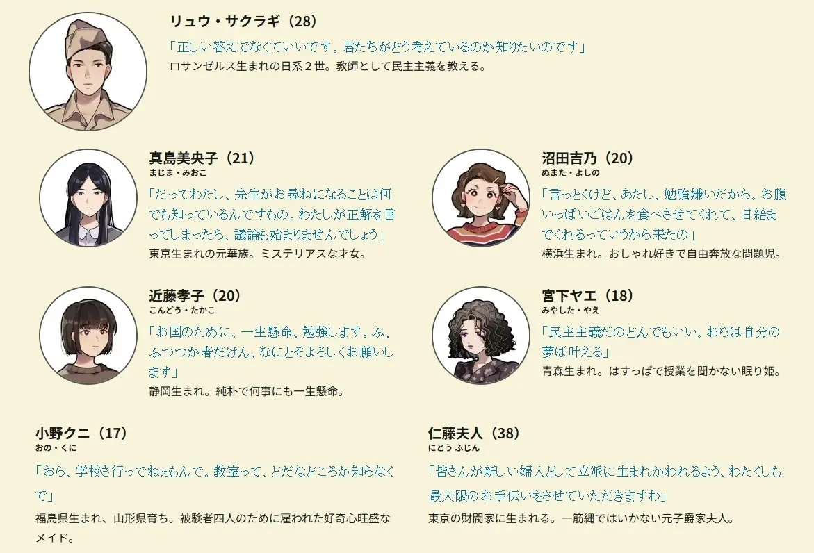 1946年11月、民主化政策の成果を焦るGHQがはじめた“民主主義のレッスン”。教師役を引き受けた日系2世のリュウ、生徒として集まった個性豊かな4人の女性――それぞれの思惑が交錯する中、風変わりな授業が幕を開ける。