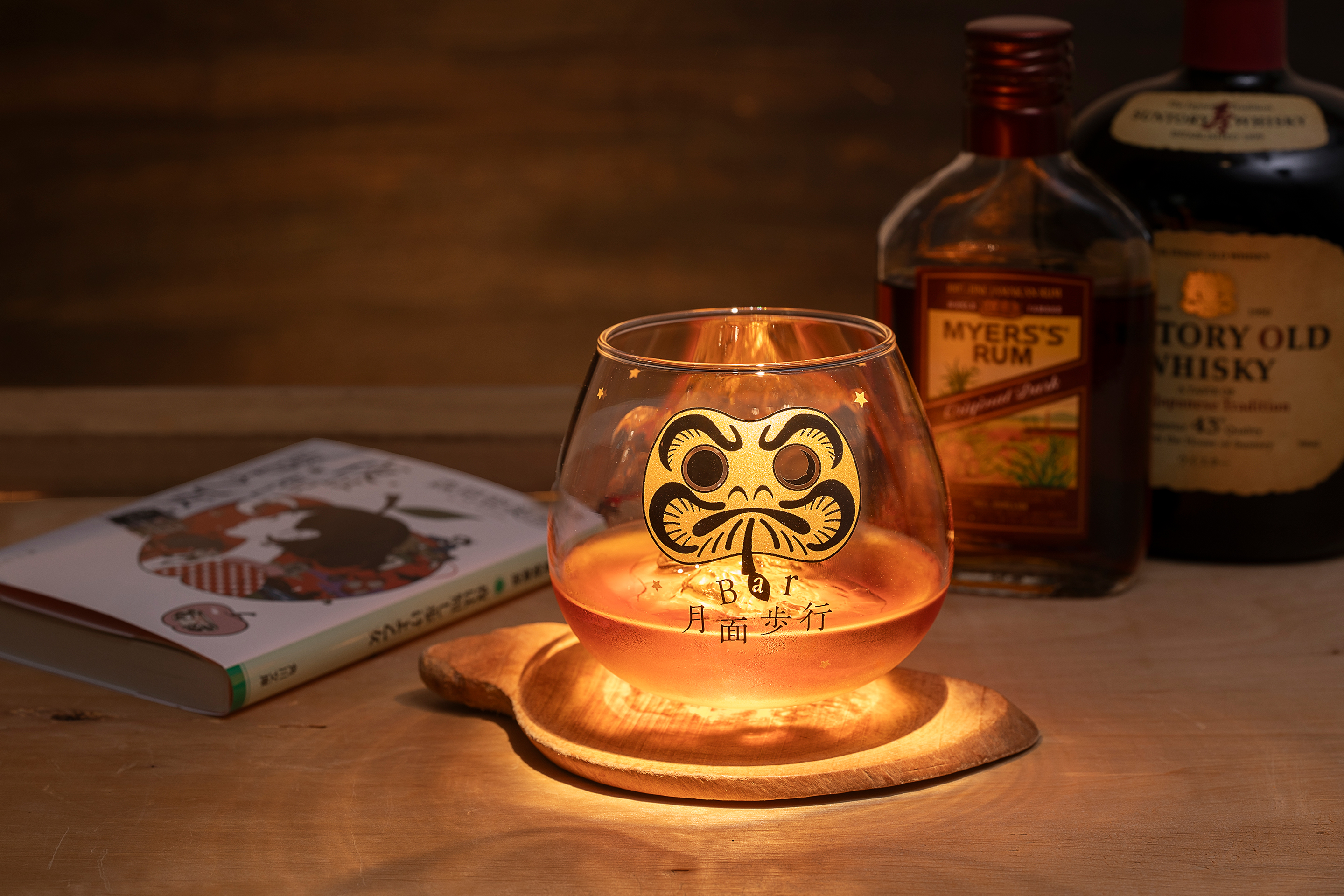 物語の中で、黒髪の乙女がめくるめく大人世界に足を踏み入れるバー「月面歩行」をイメージしたグラスを、森見登美彦さん監修のもと製作しました。