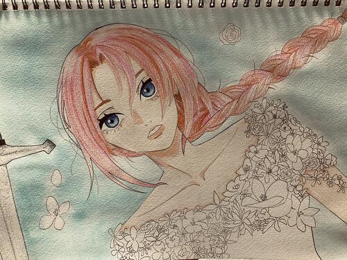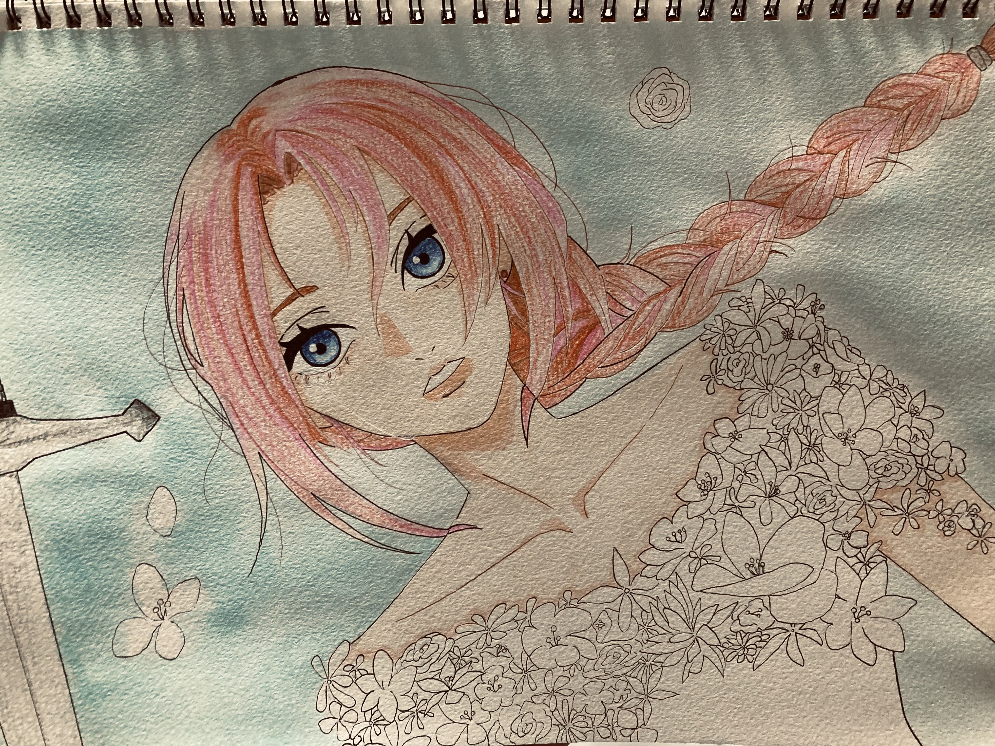 ドレスが素敵なデザインですね! PCではなく、スケッチブックにペンで描いているのも良かったですよ!